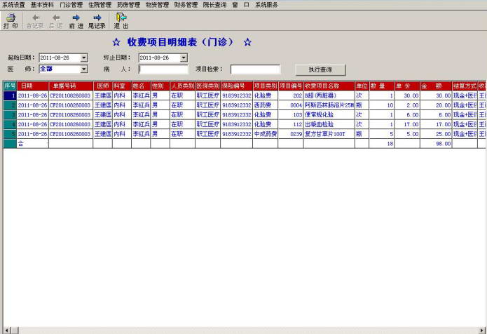 > 15、提供收费项目明细报表、汇总报表;医师收费明细报表、汇总报表表、分类汇总报表;科室收费汇总报表、分类汇总报表;