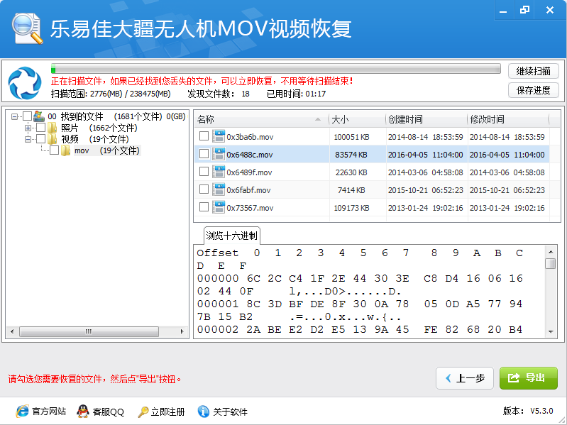 1楼 华军网友 2020-05-18 10:30:20乐易佳大疆无人机MOV视频恢复软件很好用,谢谢啦!!