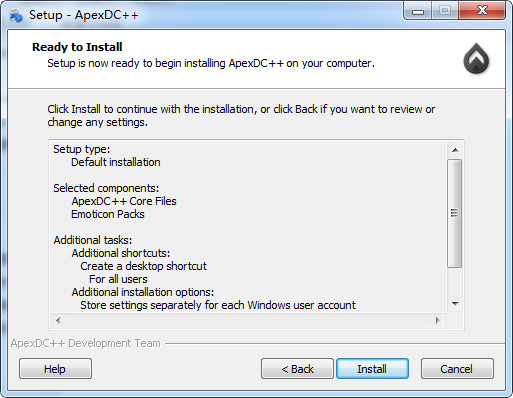 3楼 华军网友 2021-04-23 00:27:41ApexDC++(P2P分享软件)整体感觉不错,还是挺满意的,安装运行很流畅!按照安装步骤指导来非常顺利!