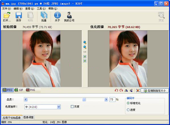 1楼 华军网友 2022-02-11 06:28:06图像压缩优化(RIOT)界面设计很容易上手,功能很丰富,本人极力推荐!