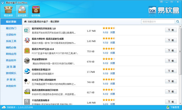 2楼 华军网友 2021-11-26 17:23:55易软件盒子ESoftbox界面设计很容易上手,功能很丰富,本人极力推荐!