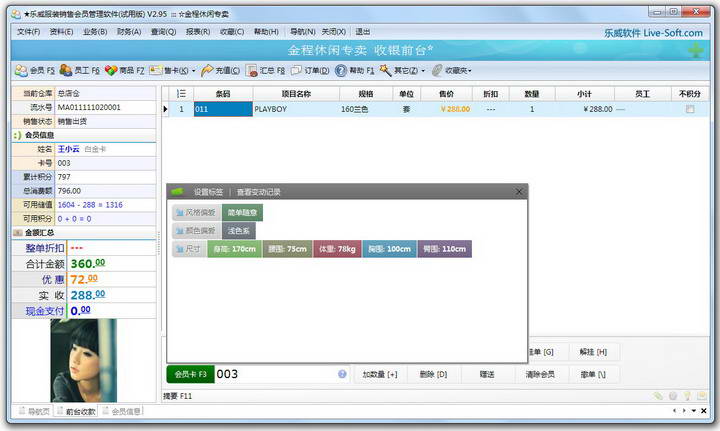 1楼 华军网友 2014-08-19 21:19:25乐威服装会员管理软件很好用,谢谢啦!!