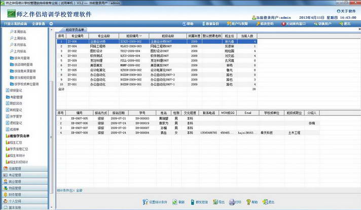 2、实现群发通知,可将拟定的各类通知发送到与本软件配套的“学员与老师查询系统”里,相关学员与老师登录后即时接收查看通知。