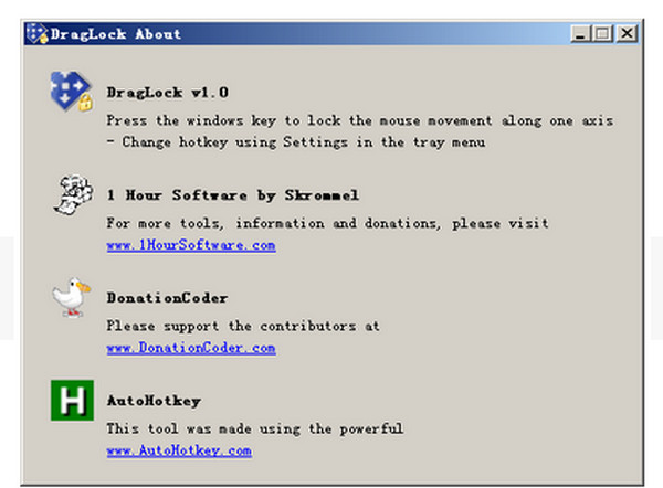 1楼 华军网友 2019-04-28 18:22:27DragLock很好用,谢谢啦!!