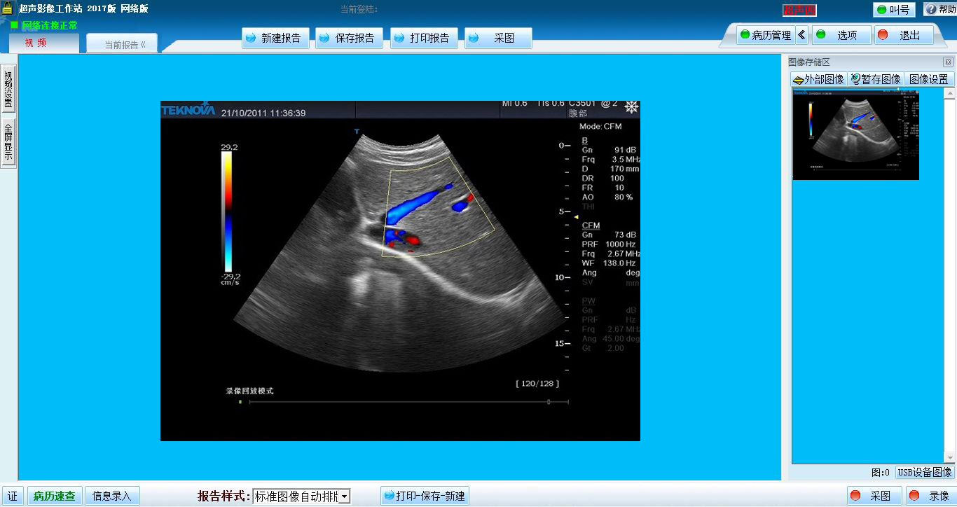 本程序提供丰富的报告转换输出功能,用户可使用报告浏览器方便快捷的浏览或打印存储的病历,并支持以JPG、WORD、PDF、Html、Xml、dicom格式导出报告,供第三方使用,也支持将报告发送至PACS系统。