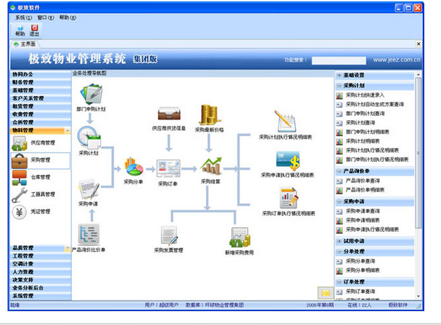 极致物业管理软件包含协同办公、收费管理、客户关系管理、设备管理、物料管理和人力资源管理等多个功能模块,基本涵盖了各个业务领域,能够实现精细化管理。