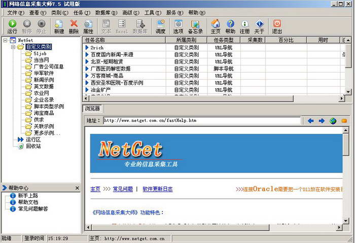 1.强大的信息采集功能。可采集几乎任何类型的网站信息,包括静态htm,html类型和动态ASP,ASPX,JSP等。可N级页面关联采集,自动整合成一条完整记录。支持网页框架,链接和网页加密等。支持完整采集和增量采集(断点续采)。可自动下载二进制文件,比如图片,软件,mp3等。可采集本地磁盘信息。支持Post数据请求采集方式。