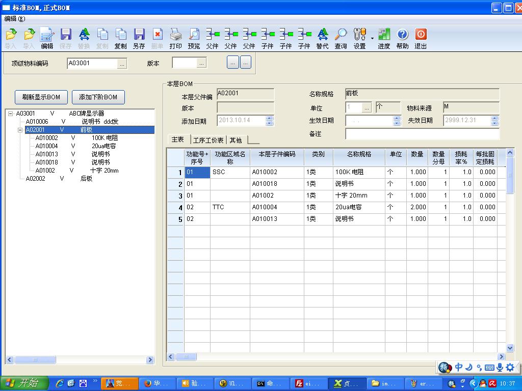 09.工程:设计BOM,标准BOM物料及工序工价,客户BOM,生产BOM,及导入、反向、正向展开、复制和查询,替代料。