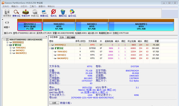2、Eassos PartitionGuru支持2TB以上硬盘GUID分区表的管理及其数据恢复功能;