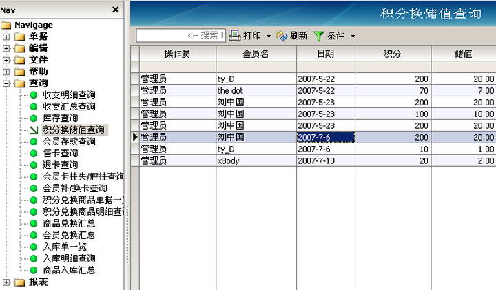 13) 万能查询:会员资料、消费记录、操作日志等查询窗口可自由组合查询方式。