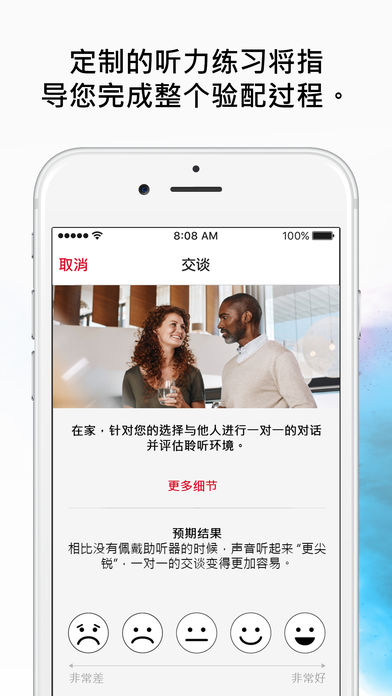 此外,听力练习能帮助您更快地适应助听器的佩戴过程。您与验配师之间,仅仅是一个按钮的距离,可通过电话或信息交流(2)。