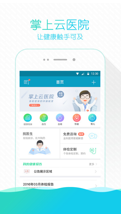 “体检管家”全新升级,正式更名为“掌上云医院”,新的Logo,新的设计、新的体验,只为您更健康。