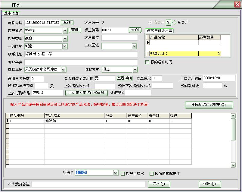 迅驰桶装水纯净水管理软件系统(来电显示)