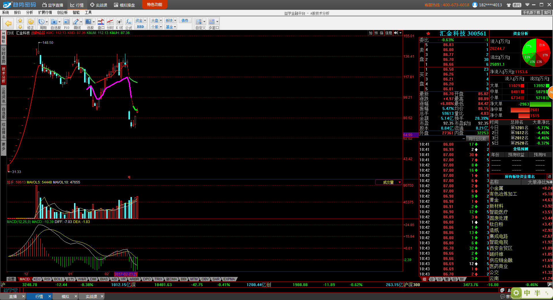 1、多种操盘线:益学特有多空操盘线、分时密码操盘线、导师特色操盘选股指标,100个股市指标和300个特色指标;