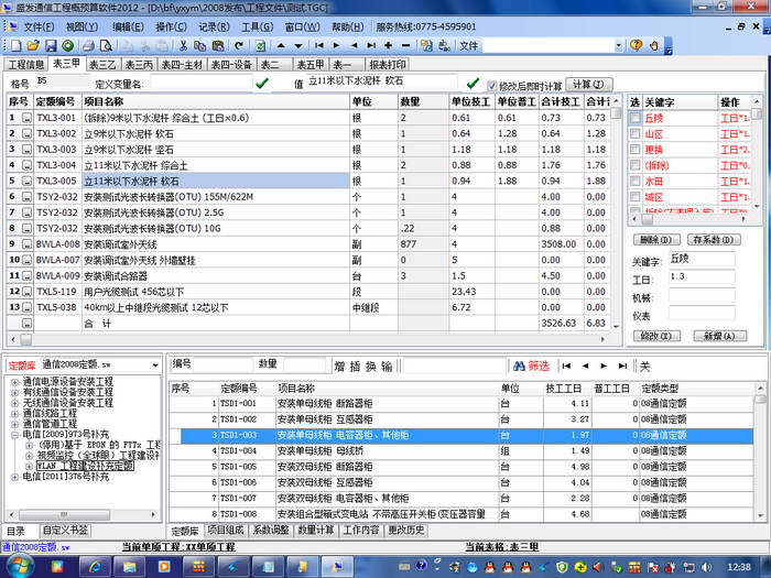 1.按工信部于2011年发布的无源光网络补充定额增加了一个新的定额库 通信2008定额(修订)。sw,如果要用以前的定额库请在表三甲下面,左边目录树上面切换 通信2008定额。sw