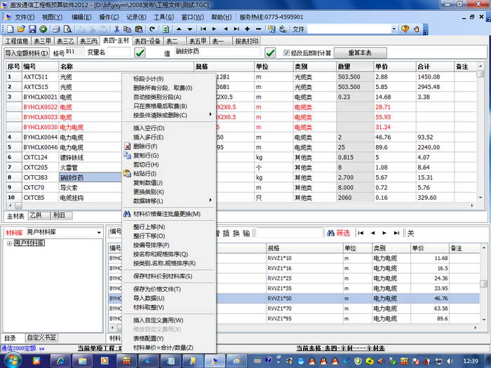 《盛发通信工程概预算软件》是一款用于编制通信建设工程概算、预算、决算、结算的造价软件。软件的主要编制依据是按照中华人民共和国工业和信息化部发布的2008 75号《通信建设工程概算、预算编制办法》以及相关的定额(《通信电源设备安装工程预算定额》、《有线通信设备安装工程预算定额》、《无线通信设备安装工程预算定额》、《通信线路工程预算定额》、《通信管道工程预算定额》)。