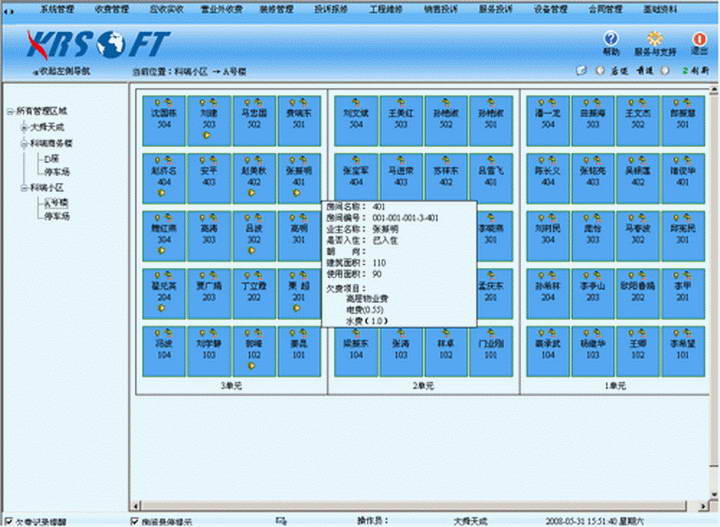 4.强大的收费日志查询功能及灵活的费用统计报表功能,帮助管理者随时获得服务处各项费用的收费情况及收缴率信息。