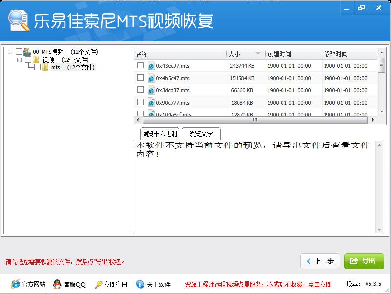 2楼 华军网友 2020-10-04 14:38:41乐易佳索尼MTS视频恢复软件方便实用,很给力,软件非常好用!