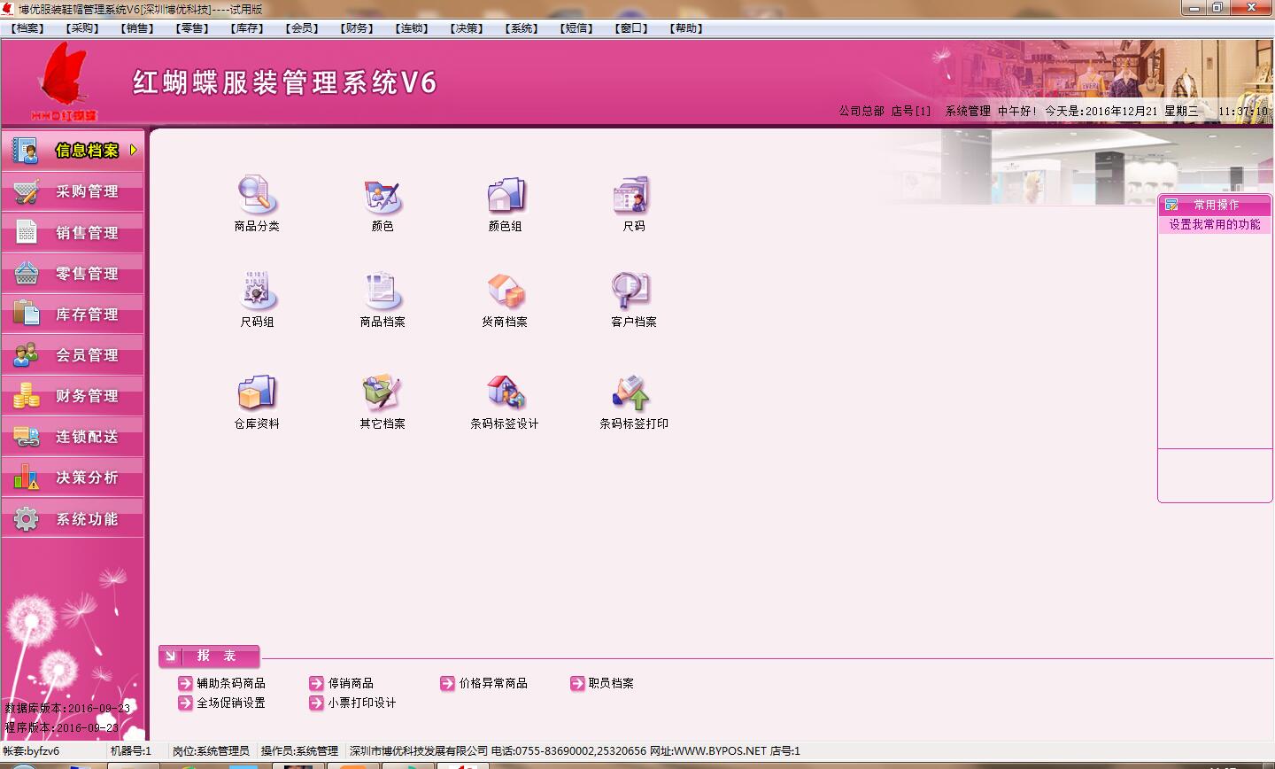2、报表、单据、查询界面全面支持花色、尺码、面料、品牌的查询、录入和输出。