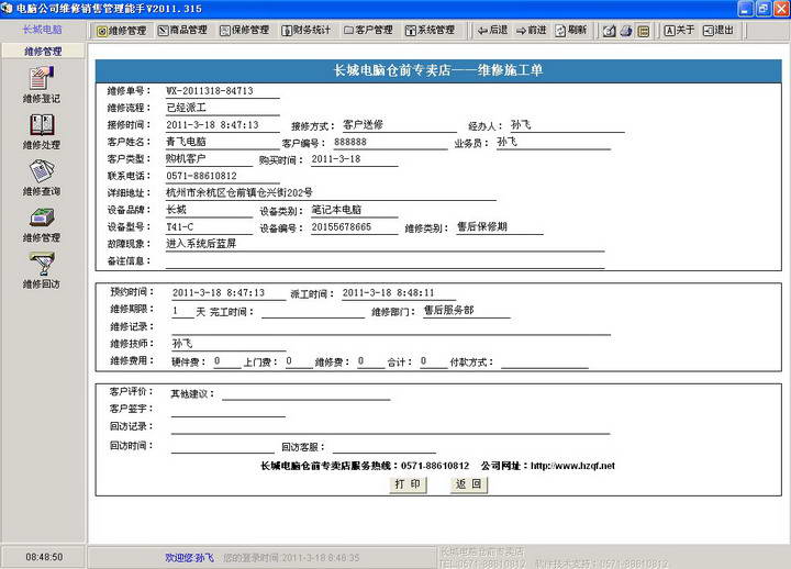 1楼 华军网友 2012-03-20 23:34:31电脑公司维修销售管理能手界面设计很容易上手,功能很丰富,本人极力推荐!