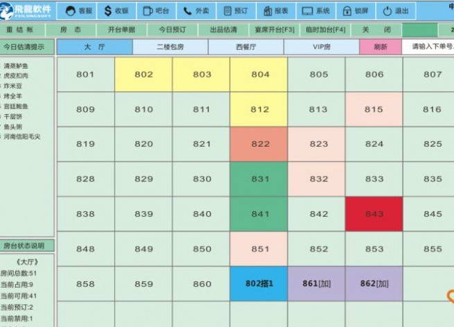 1.界面美观、操作简单、快捷,主要功能在小键盘上即可完成;支持筵席餐、旅游餐;2.支持按钮点菜、编码点菜、拼音码点菜,系统自动辨别录入方式,能极大地提高前台营业的效率;3.通过具有无线功能的智能掌上PDA,服务员可以随时随地为顾客开台、点菜、退台、并台、换台、查询消费情况,并即时的把数据传到后台和分布在厨房与前台的打印机,使用快捷方便;4.系统根据消费规则自动赠送、取消消费项目,个性化房台定义;5.酒吧库存商品、普通项目配料自动减少库存,统计库存数量;6.系统报表自动生成服务员点单业绩统计表、服务员推销提成业绩统计表。