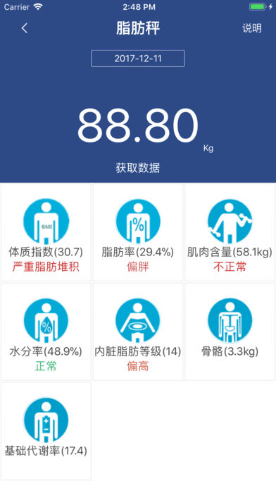 4、更多、更全的健康检测项目-通过蓝牙连接外接电子医疗设备,可以检测多达13项的人体基本健康数据(包括心率、心电、血压、体温、体重、脂肪率、体质指数、基础代谢率等等)。让使用者可以及时知晓自己的健康状况