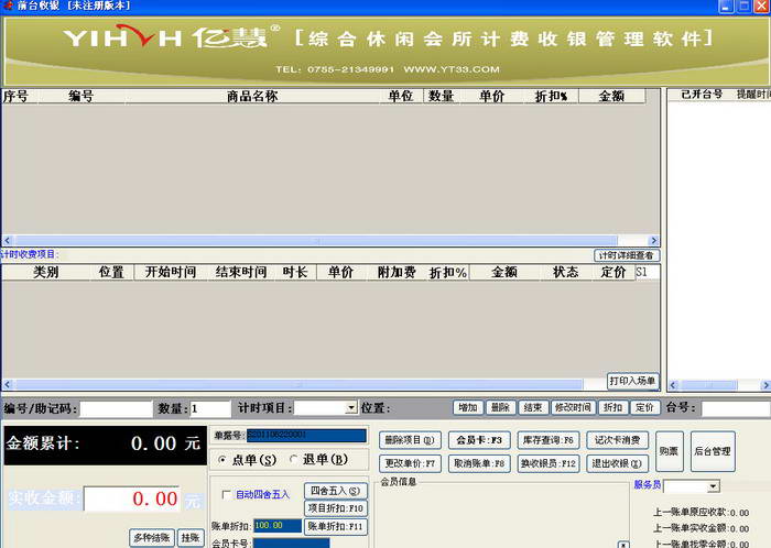 软件用途:适用于综合休闲会所会员与散客消费统一收银管理的单位。