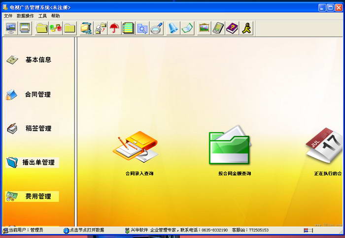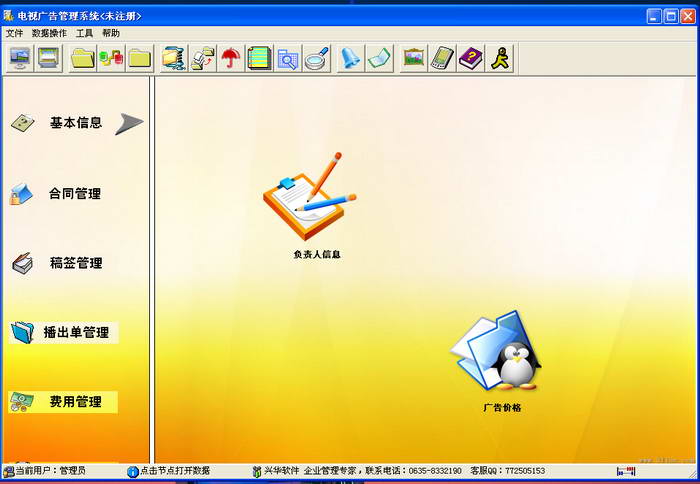 2楼 华军网友 2019-02-02 19:21:02兴华电视广告管理软件界面设计很容易上手,功能很丰富,本人极力推荐!