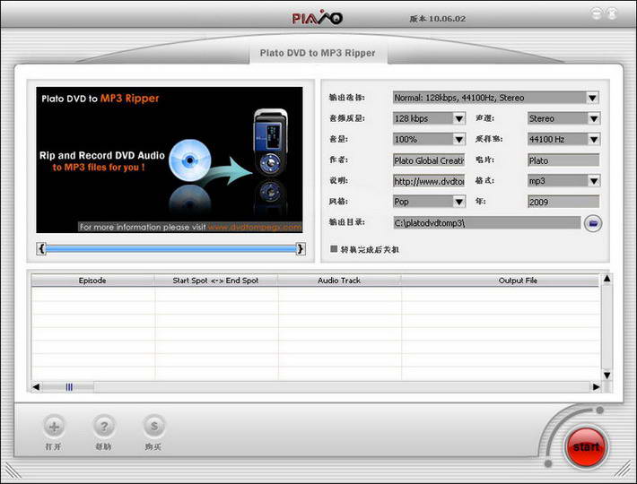 2楼 华军网友 2012-08-07 05:04:40Plato DVD to MP3 Ripper界面设计很容易上手,功能很丰富,本人极力推荐!