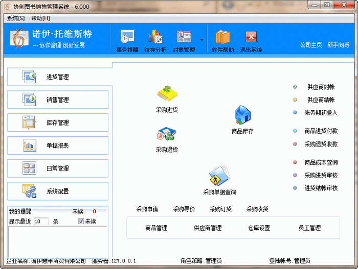 协创图书销售管理系统广泛适用于公司,企业,商场,超市,门店等图书、报刊销售领域的企业单位、店铺、卖场用于图书采购管理,销售管理,收银管理,库存管理,财务管理,客户管理,员工管理等,是您企业进行信息化管理的贴心工具。