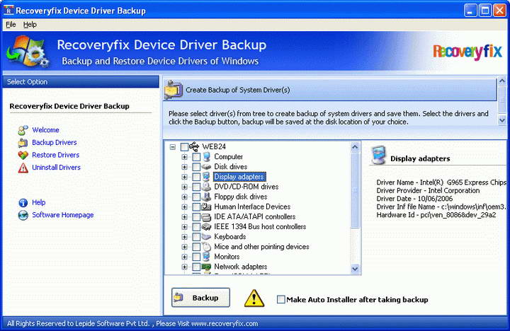 1楼 华军网友 2015-04-03 15:13:56Recoveryfix Device Driver Backup很好用,谢谢啦!!