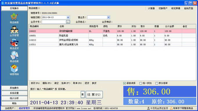 3楼 华军网友 2011-09-24 14:37:30好店铺母婴用品店收银管理软件方便实用,很给力,软件非常好用!