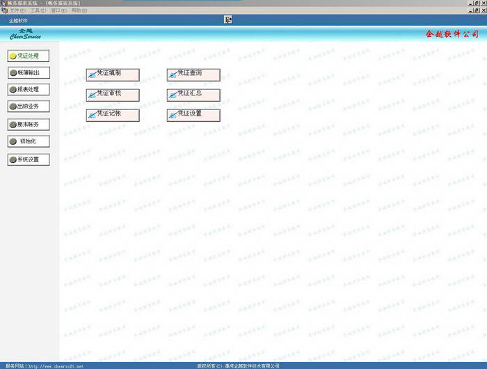 企越财务管理系统具有财务软件的总帐报表系统功能,整个系统小巧、易学易用、操作灵活; 具有凭证登录修改、审核、月结,以及凭证的反启用、反审核、反登帐、反月结等功能。