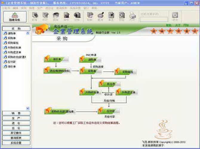 - 企业完整的采购流程(提供四种采购流程、两种外购收货流程,根据需要自已选择)。
