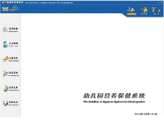 幼儿园营养保健系统 适用于幼儿个体或幼儿园群体的营养保健和膳食配餐专用系统,可广泛使用于各级幼儿园、妇幼保健院、疾病控制中心、幼儿园管理机构以及其他幼儿辅助机构等,同时是幼儿园进行级别评定和核准的必选软件。