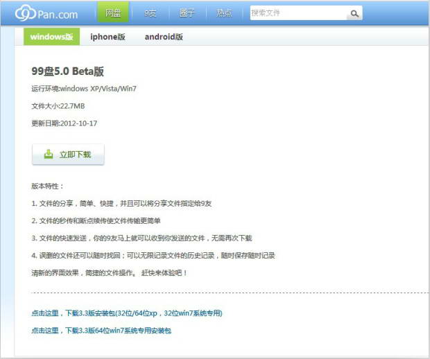 1楼 华军网友 2013-06-25 17:03:1199盘windows版客户端超级棒!点一亿个赞!!!