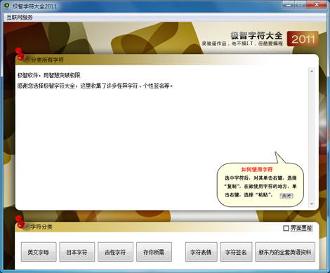 3楼 华军网友 2017-10-01 19:29:21极智字符大全2011功能全面,使用也挺方便的。