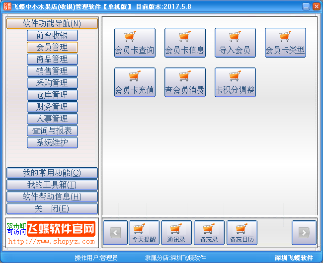 《飞蝶中小水果店(收银)管理软件》是一款专门针对中小水果店而开发的管理软件,软件整合了零售收银、会员管理、商品管理、采购管理、仓库管理、查询与报表、系统维护等功能,协助您轻松经营管理。
