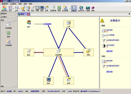 龙脑通是在2008年国际金融危机的背景下,为解决药房药品管理难题,提高工作效率,降低成本而研发。只要您拥有一台电脑,完全可以实现药品及会员管理(外部设备可选配),可降低管理成本,提高竞争力。 目前主要分为两个版本,其操作流程基本一致,并支持现有单机版直接升级到多机版,其区别: