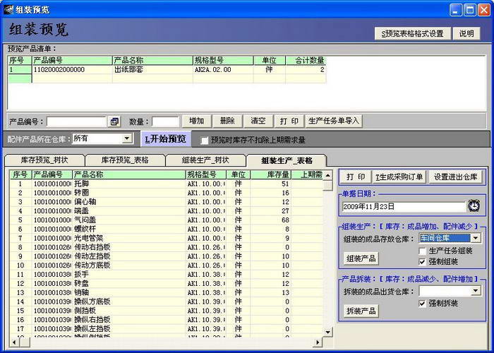 大洋装配型企业生产仓库管理系统