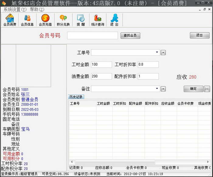 4、会员消费:会员类别自动升级。可以按不同的服务项目分别收费、积分、打折。