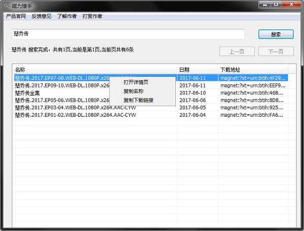 1楼 华军网友 2017-12-29 14:27:58磁力猎手界面设计很容易上手,功能很丰富,本人极力推荐!
