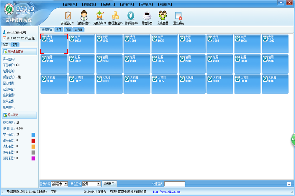 ◆ 台位资料、商品资料:填写台位信息、楼层资料、台位价格;设置商品资料,如果有商品破损也可以设置一个类。