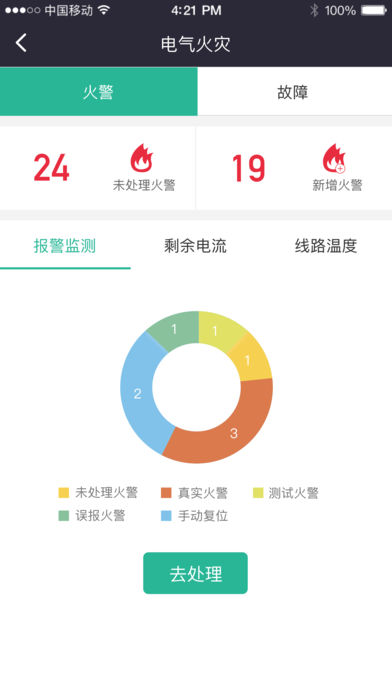 2、包含主机报火警、电气火灾类火警、无线烟感类火警、燃气监测类火警;
