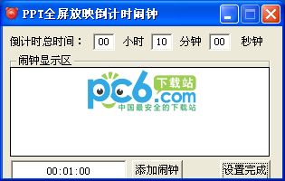1楼 华军网友 2017-09-16 13:37:26ppt全屏放映计时闹钟很好用,谢谢啦!!